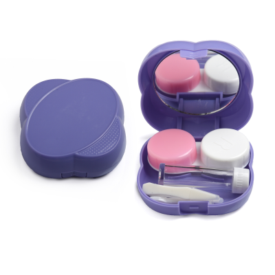Contact Lens Case Container Kit with Mirror Tweezer Applicator Lens Stick And Solution Bottle LC - 3028 A_PURPLE