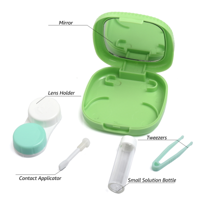 Contact Lens Case Container Kit with Mirror Tweezer Applicator Lens Stick And Solution Bottle LC - 3025 - B
