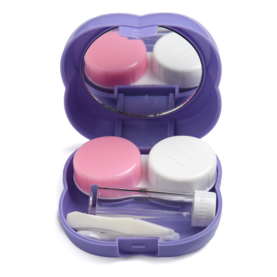 Contact Lens Case Container Kit with Mirror Tweezer Applicator Lens Stick And Solution Bottle LC - 3028 A_PURPLE