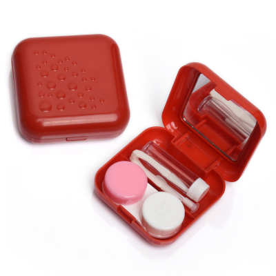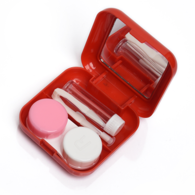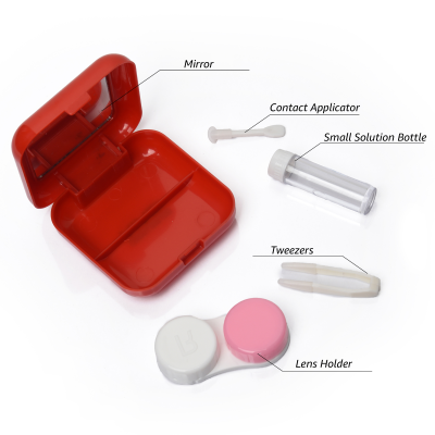 Contact Lens Case Container Kit with Mirror Tweezer Applicator Lens Stick And Solution Bottle LC - 3029 A_RED