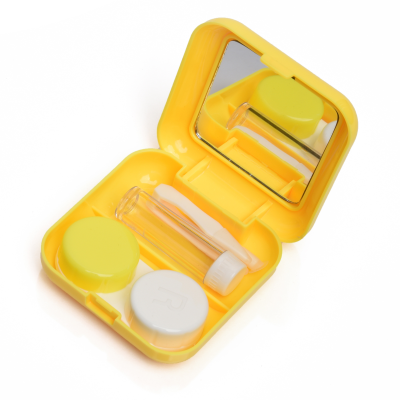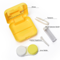 Contact Lens Case Container Kit with Mirror Tweezer Applicator Lens Stick And Solution Bottle LC - 3029 C_LEMON