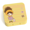 Contact Lens Case Container Kit with Mirror Tweezer Applicator Lens Stick And Solution Bottle LC - 3033 A2_LEMON/BROWN HAIR