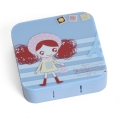 Contact Lens Case Container Kit with Mirror Tweezer Applicator Lens Stick And Solution Bottle LC - 3033 C2_BLUE/RED HAIR