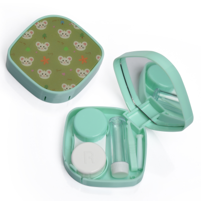 Contact Lens Case Container Kit with Mirror Tweezer Applicator Lens Stick And Solution Bottle LC - 3034 B_SEA GREEN