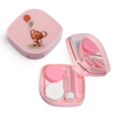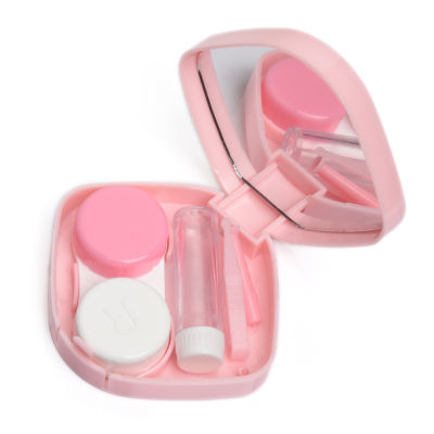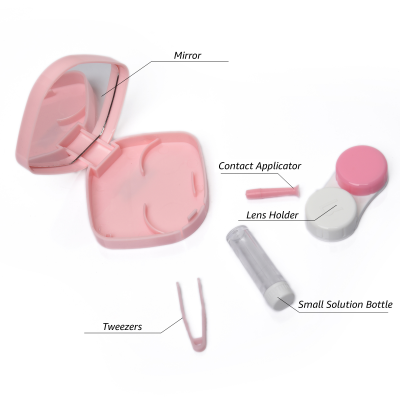 Contact Lens Case Container Kit with Mirror Tweezer Applicator Lens Stick And Solution Bottle LC - 3034 C_PINK