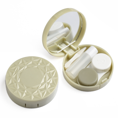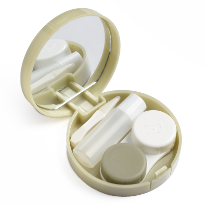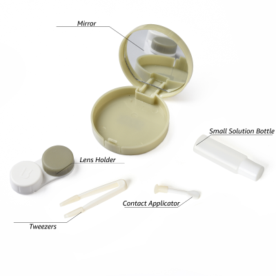 Contact Lens Case Container Kit with Mirror Tweezer Applicator Lens Stick And Solution Bottle LC - 3035 D_OLIVE
