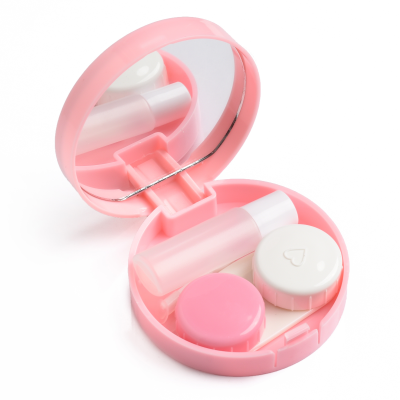 Contact Lens Case Container Kit with Mirror Tweezer Applicator Lens Stick And Solution Bottle LC - 3037 C_PINK