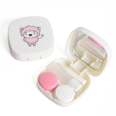 Contact Lens Case Container Kit with Mirror Tweezer Applicator Lens Stick And Solution Bottle LC - 3039 A_PINK CARTOON