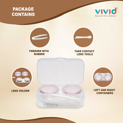 Contact Lens Case Container Kit with Mirror Tweezer Applicator Lens Stick And Solution Bottle LC-3050-PINK