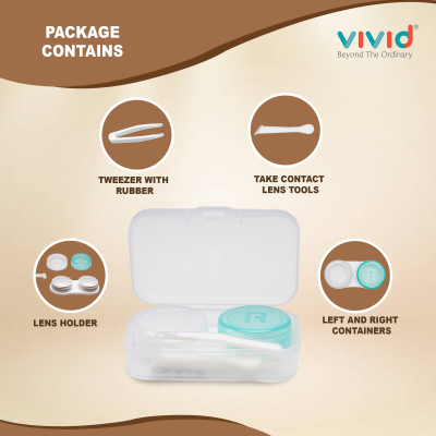 Contact Lens Case Container Kit with Mirror Tweezer Applicator Lens Stick And Solution Bottle LC-3052-GREEN