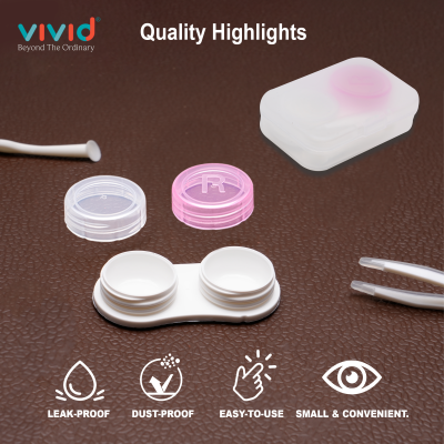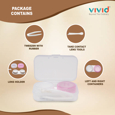 Contact Lens Case Container Kit with Mirror Tweezer Applicator Lens Stick And Solution Bottle LC-3052-PINK