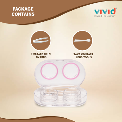 Contact Lens Case Container Kit with Mirror Tweezer Applicator Lens Stick And Solution Bottle LC-3053-PINK