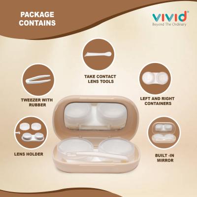 Contact Lens Case Container Kit with Mirror Tweezer Applicator Lens Stick And Solution Bottle LC-3054-CREAM