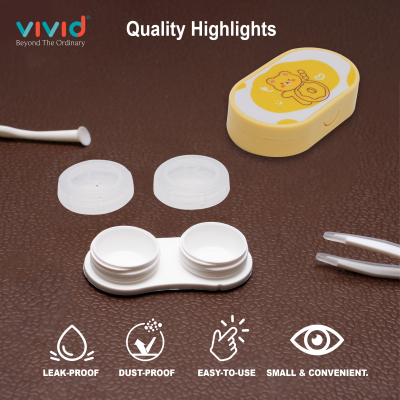 Contact Lens Case Container Kit with Mirror Tweezer Applicator Lens Stick And Solution Bottle LC-3058-LEMON