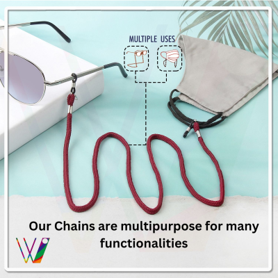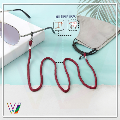 PRODUCT DETAILS: Material- Fabric || Color- Maroon|| Close type- Silicone Rubber || Lock- Metal Hook || Chain Standard Length- Approx. 70 cm || Chain Use for- Mask, Reading Eyeglasses, Bracelet, Necklace, Key Chains, Pendant, Eyewear, Spectacle, Swimming Goggles, Sports Glasses, and More || Suitable for- Men, Women, & Children.