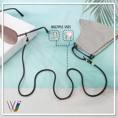 PRODUCT DETAILS: Material- Fabric || Color- Black || Close type- Silicone Rubber || Lock- Metal Hook || Chain Standard Length- 75 cm || Chain Use for- Mask, Reading Eyeglasses, Bracelet, Necklace, Key Chains, Pendant, Eyewear, Spectacle, Swimming Goggles, Sports Glasses, and More || Suitable for- Men, Women, & Children.