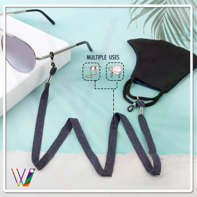 PRODUCT DETAILS: Material- Fabric || Color- Blue || Close type- Silicone Rubber || Lock- Metal Hook || Chain Standard Length- 72 cm || Chain Use for- Mask, Reading Eyeglasses, Bracelet, Necklace, Key Chains, Pendant, Eyewear, Spectacle, Swimming Goggles, Sports Glasses, and More || Suitable for- Men, Women, & Children.