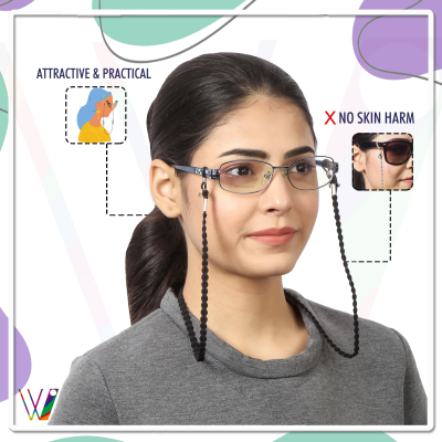 PRODUCT DETAILS: Material- Elastic || Color- Black || Close type- Silicone Rubber || Lock- Metal Hook || Chain Standard Length- 75cm & Weight 7 gram|| Chain Use for- Mask, Reading Eyeglasses, Bracelet, Necklace, Key Chains, Pendant, Eyewear, Spectacle, Swimming Goggles, Sports Glasses, and More || Suitable for- Men, Women, & Children.