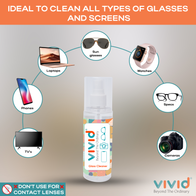 Cleans every corner of your Glasses- Cleaner spreads in all the directions and corners of your spectacles cleaning and wiping all Dust, Oil, and fingerprints. It Cleans off all the bacteria and gives crystal clear vision. Easy to use and one can carry it with them daily, just simply spray and wipe your spectacles and get back to work. Do not ingest. Avoid contact with open wounds. Keep out of reach of children. Not to Use on Contact Lenses.