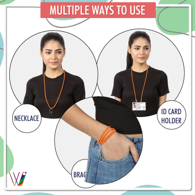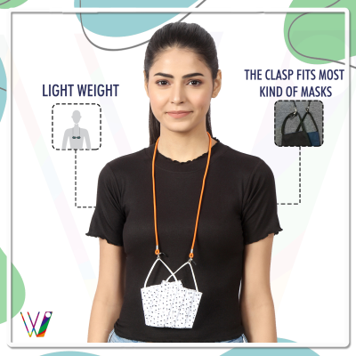 PRODUCT DETAILS: Material- Fabric || Color- Orange || Close type- Silicone Rubber || Lock- Metal Hook || Chain Standard Length- Approx. 70 cm || Chain Use for- Mask, Reading Eyeglasses, Bracelet, Necklace, Key Chains, Pendant, Eyewear, Spectacle, Swimming Goggles, Sports Glasses, and More || Suitable for- Men, Women, & Children.