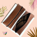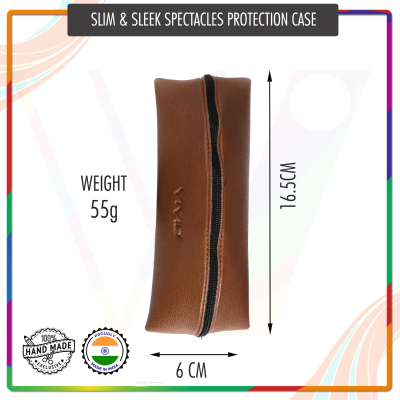 PRODUCT DETAILS : Material- Leatherite || Product Base- Hard Case || Color- Brown || Closer Type- Zip || Size- Normal || Frame Use for- Blue-cut Spectacles, Reading Glasses || Glass Fitting: Standard sized eyeglasses || Not Use for- Sunglasses.